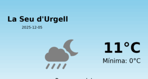 Predicció Meteorològica per La Seu d'Urgell - 11 de gener de 2026 Avui, la ciutat de La Seu d'Urgell gaudirà d'una jornada amb condicions meteorològiques...