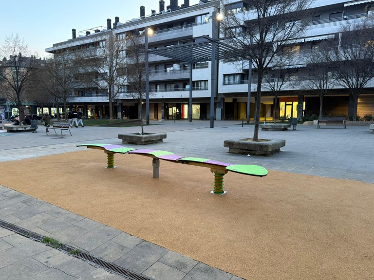 En relació a la primera fase, la zona de l’antiga làmina d’aigua ha estat transformada en un espai lúdic infantil. Aquesta làmina no era funcional per motius de seguretat i, gràcies a les obres, s’ha eliminat un suposat espai infrautilitzat, ampliant així la superfície destinada al joc dels nens.