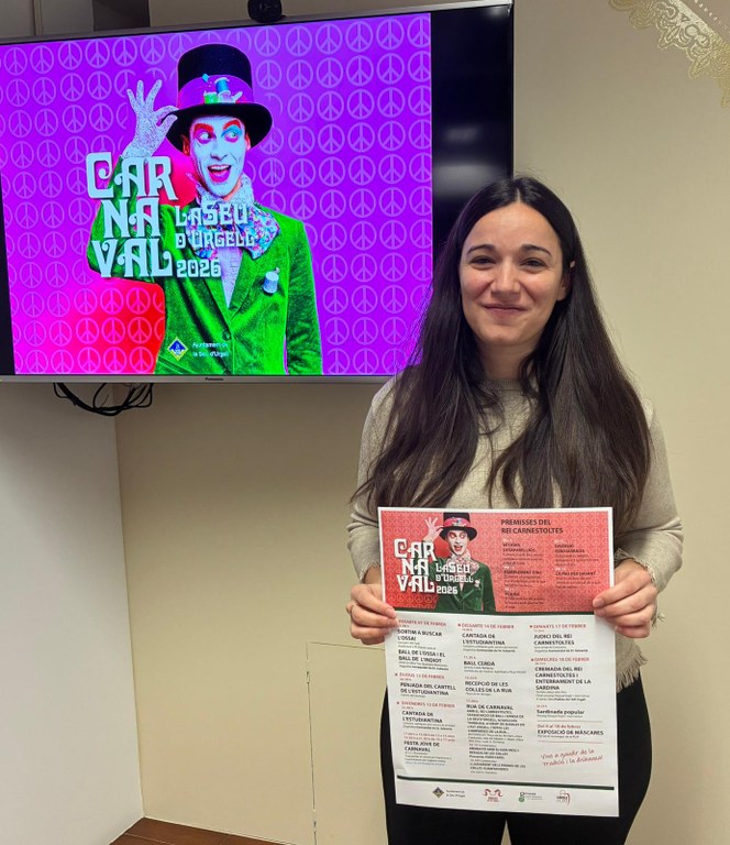 Aquest matí, la regidora de Festes de l’Ajuntament de la Seu d’Urgell, Christina Moreno, ha donat a conèixer el programa del Carnaval 2026. En aquesta edició, s’ha posat especial èmfasi en el component social, reivindicant la pau, la cohesió i la participació dels més joves.