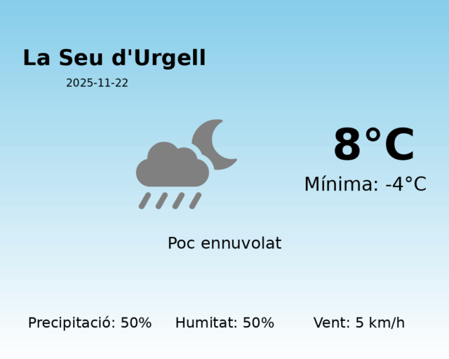 Predicció meteorològica per a La Seu d’Urgell: 22 de novembre de 2025