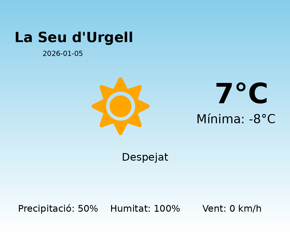 Predicció Meteorològica per La Seu d’Urgell – 5 de gener de 2026